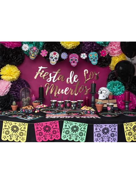 20 Fekete Papír szalvéták Virág (33x33 cm) - Dia de los Muertos Collection