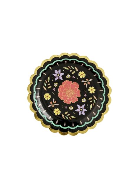 6 Black Papírtányérok tarka virág (18 cm) - Dia de los Muertos Collection