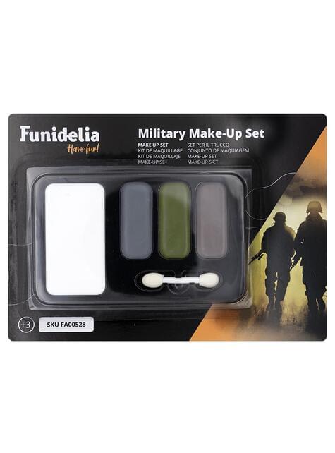 Tartalmaz egy négy színből álló palettát (fehér, fekete, zöld és barna) és egy dupla applikátort, amely megkönnyíti a keverést és az árnyékolást. Sima textúrája tökéletesen alkalmazkodik a bőrhöz, tartós, és könnyen eltávolítható. Az álcázó stílusú tok kialakítása teljesíti az élményt azok számára, akik a legapróbb részletekre is figyelnek katonai jelmezüknél.