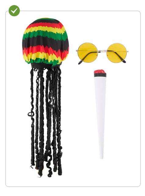 A készlet tartalmaz egy többszínű sapkát műrastasokkal, egy hamis füvet és egy sárga lencséjű napszemüveget, amelyek mind hozzájárulnak az éjszaka laza stílusához. Ellenálló és könnyű anyagokból, mint a poliészter és polipropilén, készült, ez a kiegészítő kényelmet garantál órákon át. Kombináld hétköznapi ruházattal vagy reggae ihletésű öltözetekkel, és készülj fel, hogy jó vibrációt terjessz, bárhol is jársz.