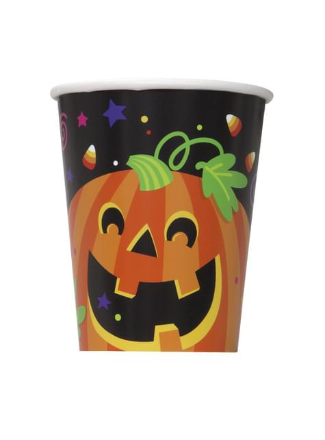 Készlet 8 csésze szórakoztató tök és macska - boldog halloween